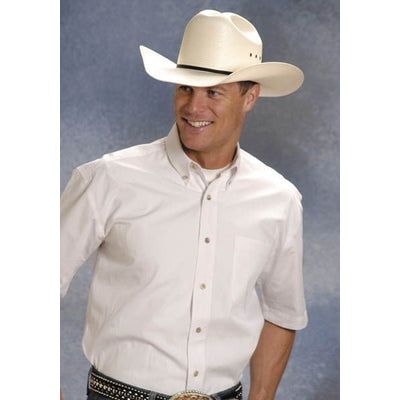 Roper Mens Solid Poplin Button Shirt Lg Wht