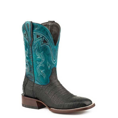 Stetons Ladies Lovington Boots Black Caiman/Turq 8