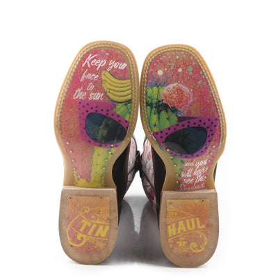 Tin Haul Ladies Square Toe Boots - Cactaplicity with Desert Moon Sole