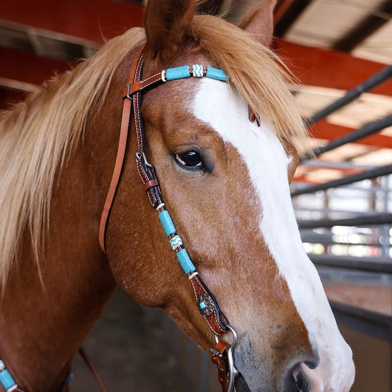 Circle Y Turq Roundup Browband Headstall Reg Oil